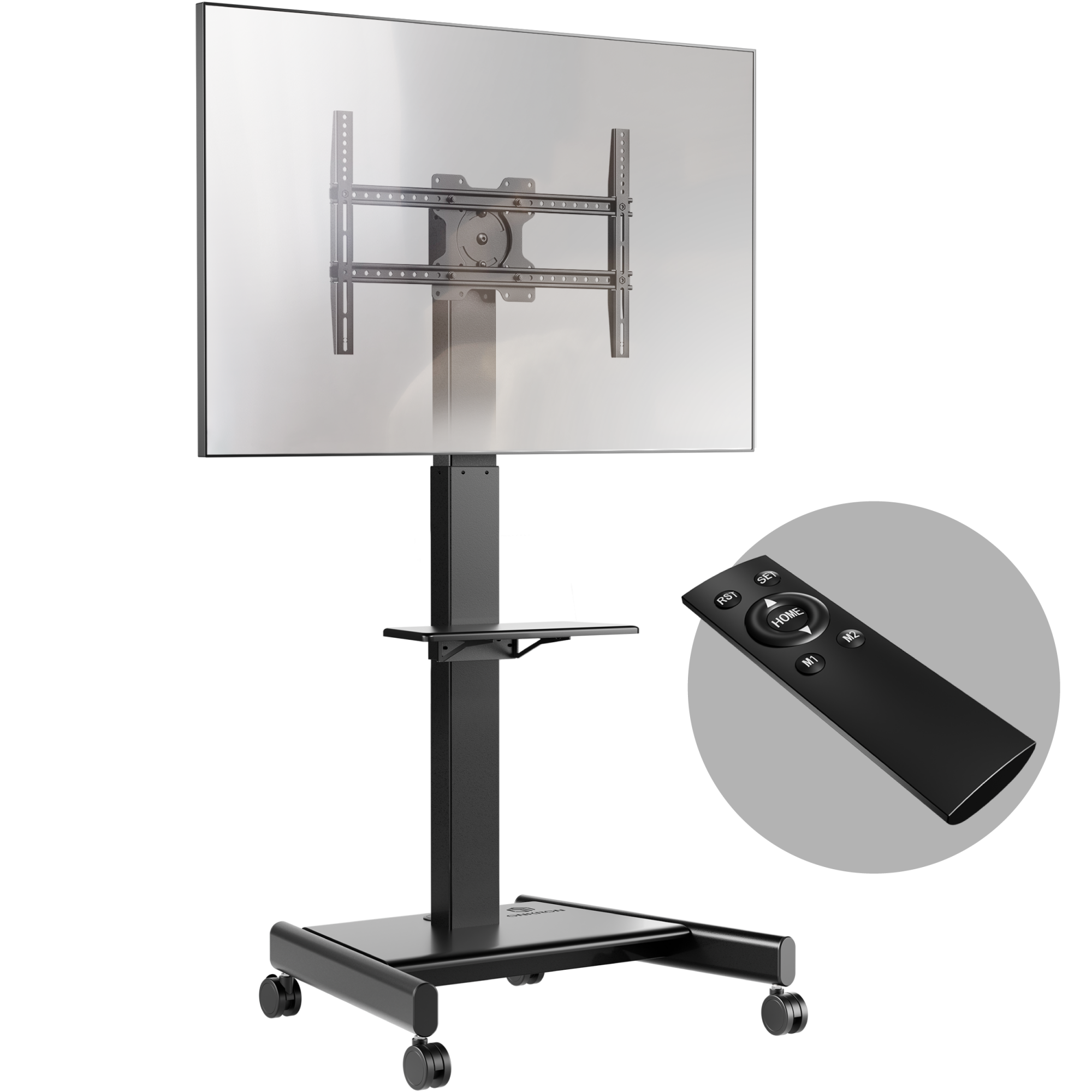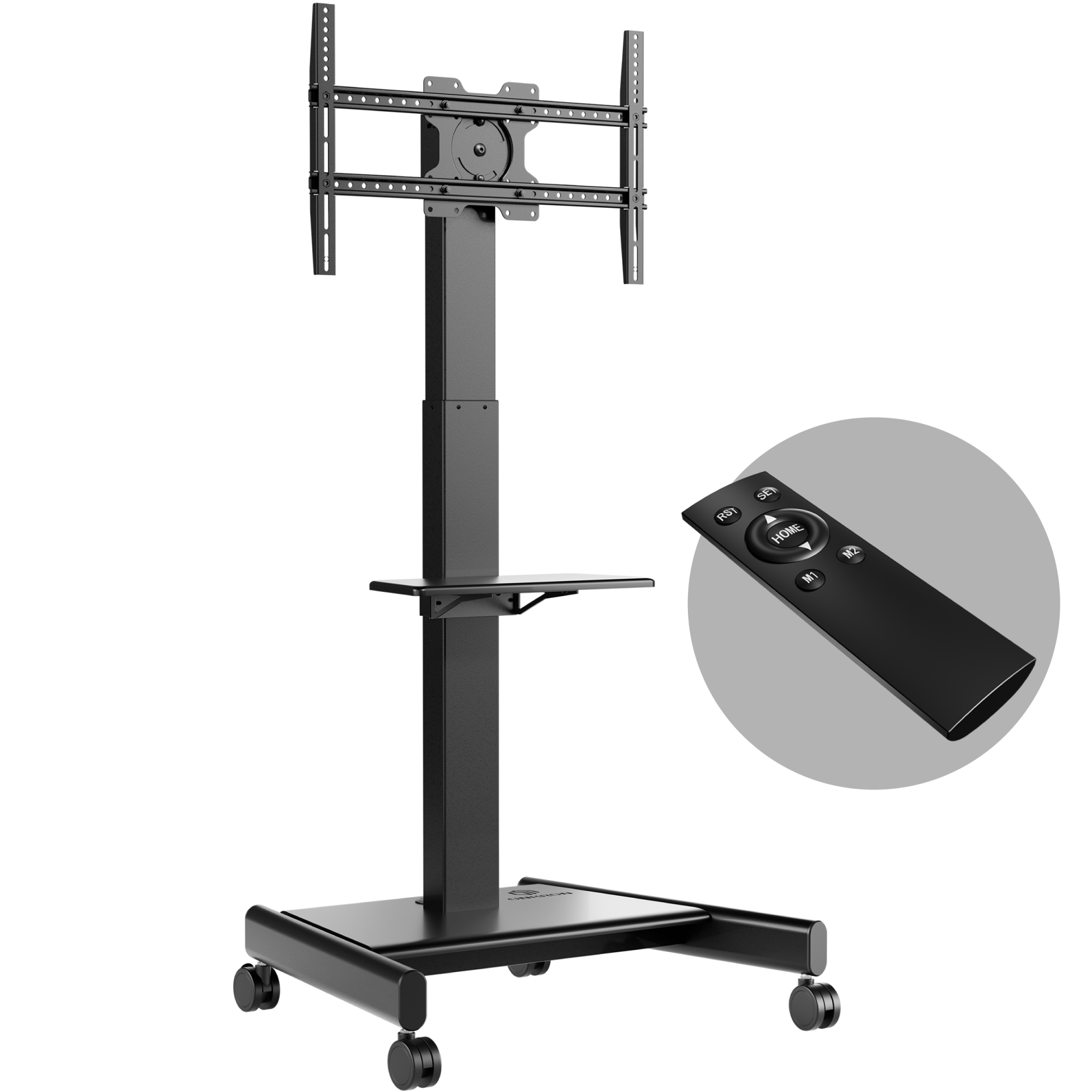 Мобильная стойка для телевизоров с диагональю экрана 43"-75". Регулировка по высоте: 950 -1600 мм. Максимальный вес ТВ: 65 кг. Максимальная нагрузка 70 кг. VESA: 100*100, 200x200, 200x300, 200x400, 300x100, 300x200, 300x300, 300x400, 400x200, 400x300, 400x400, 500x200, 500x400, 600x200, 600x300, 600x400,