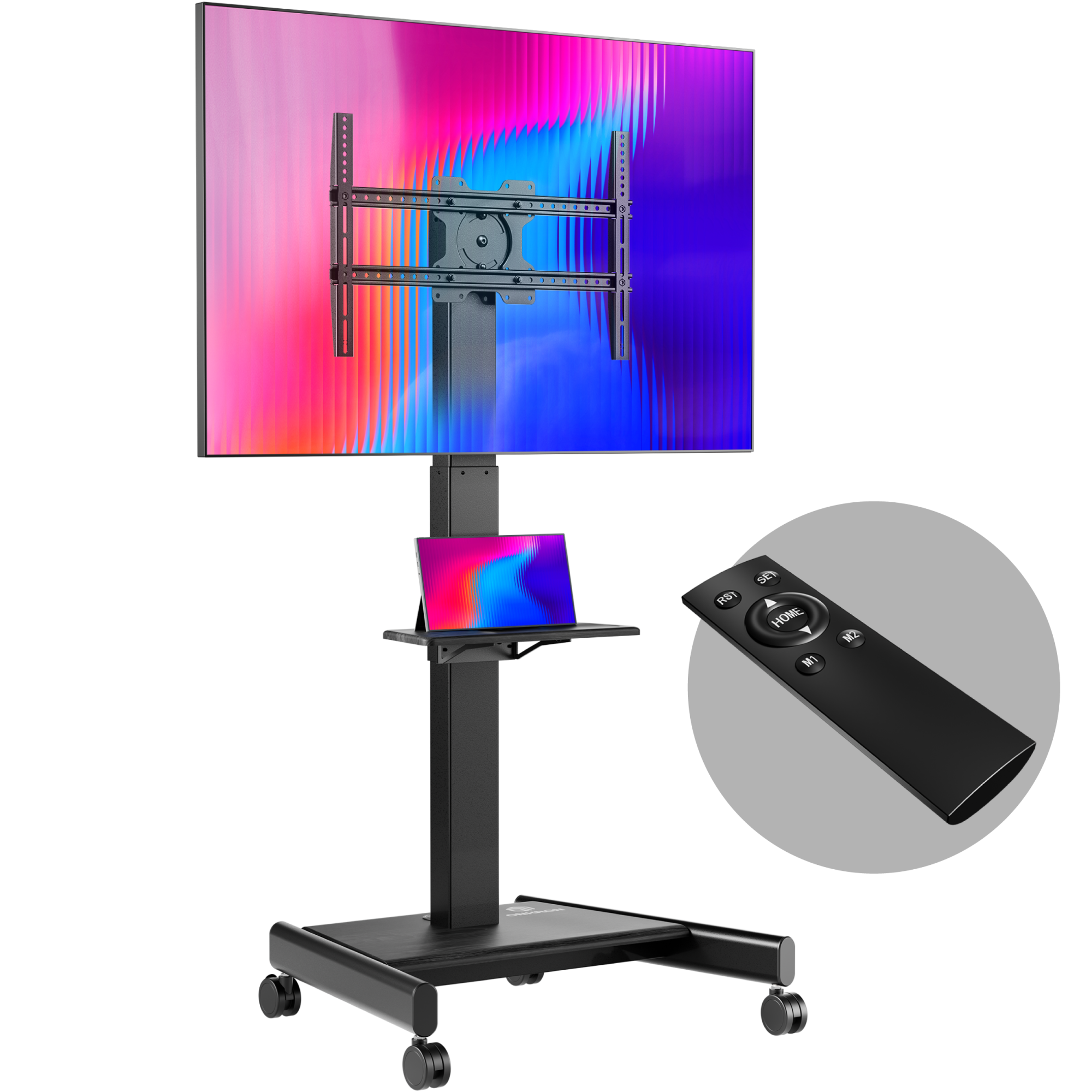 Мобильная стойка для телевизоров с диагональю экрана 43"-75". Регулировка по высоте: 950 -1600 мм. Максимальный вес ТВ: 65 кг. Максимальная нагрузка 70 кг. VESA: 100*100, 200x200, 200x300, 200x400, 300x100, 300x200, 300x300, 300x400, 400x200, 400x300, 400x400, 500x200, 500x400, 600x200, 600x300, 600x400,