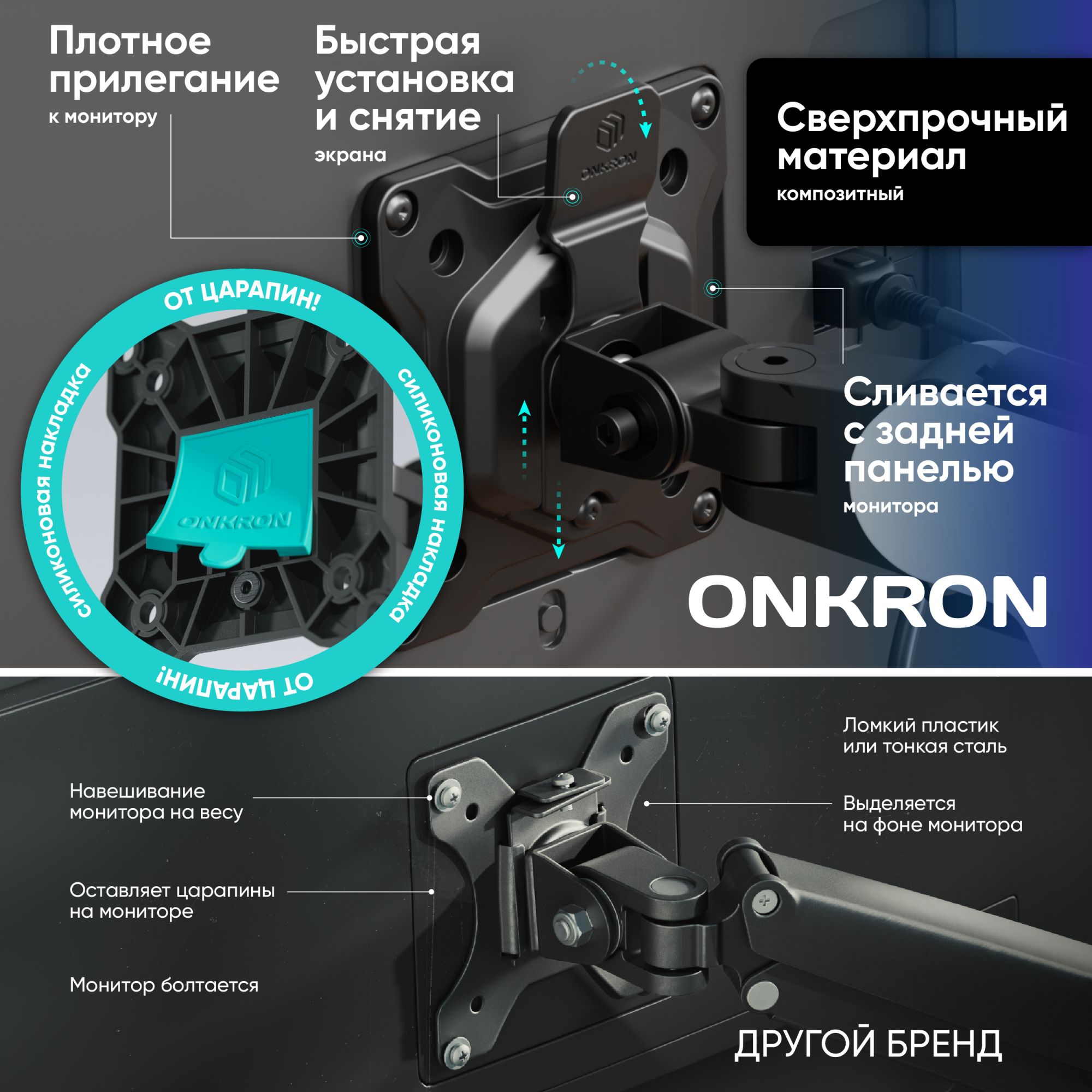 | Для мониторов с диагональю 13"-32" Допустимая нагрузка: 2 - 9 кг VESA: 75x75, 100x100 мм Угол наклона: -45° ~ +90° Угол поворота: 180° Угол вращения VESA: 360° Вылет от основания: 0-522 мм Вертикальное перемещение: 162-445 мм Портретная/альбомная ориентация экрана Установка на край стола или через отверстие в столешнице Материалы: сталь, алюминий, пластик |