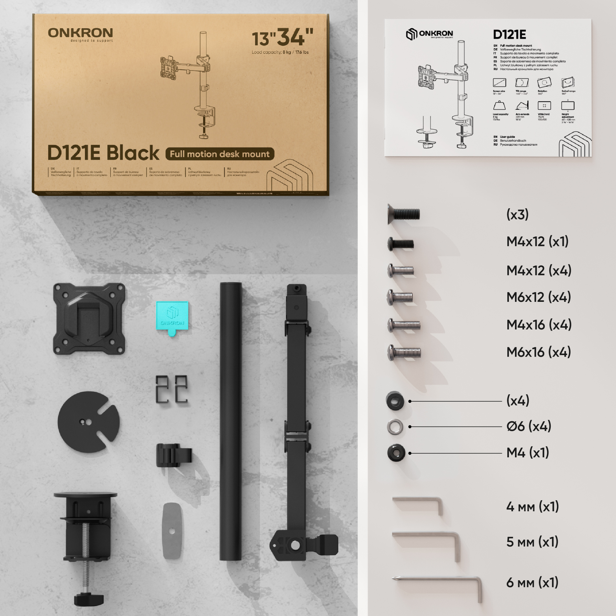 | Установка на край стола или через отверстие в столешнице Для экранов с диагональю 13"-34" Максимальная нагрузка: 8 кг VESA: 75x75, 100x100 мм Угол наклона: -45° ~ +45° Угол поворота: 360° Вылет от основания: 450 мм Вертикальное перемещение: 435 мм Портретная/альбомная ориентация экрана Материал: сталь |