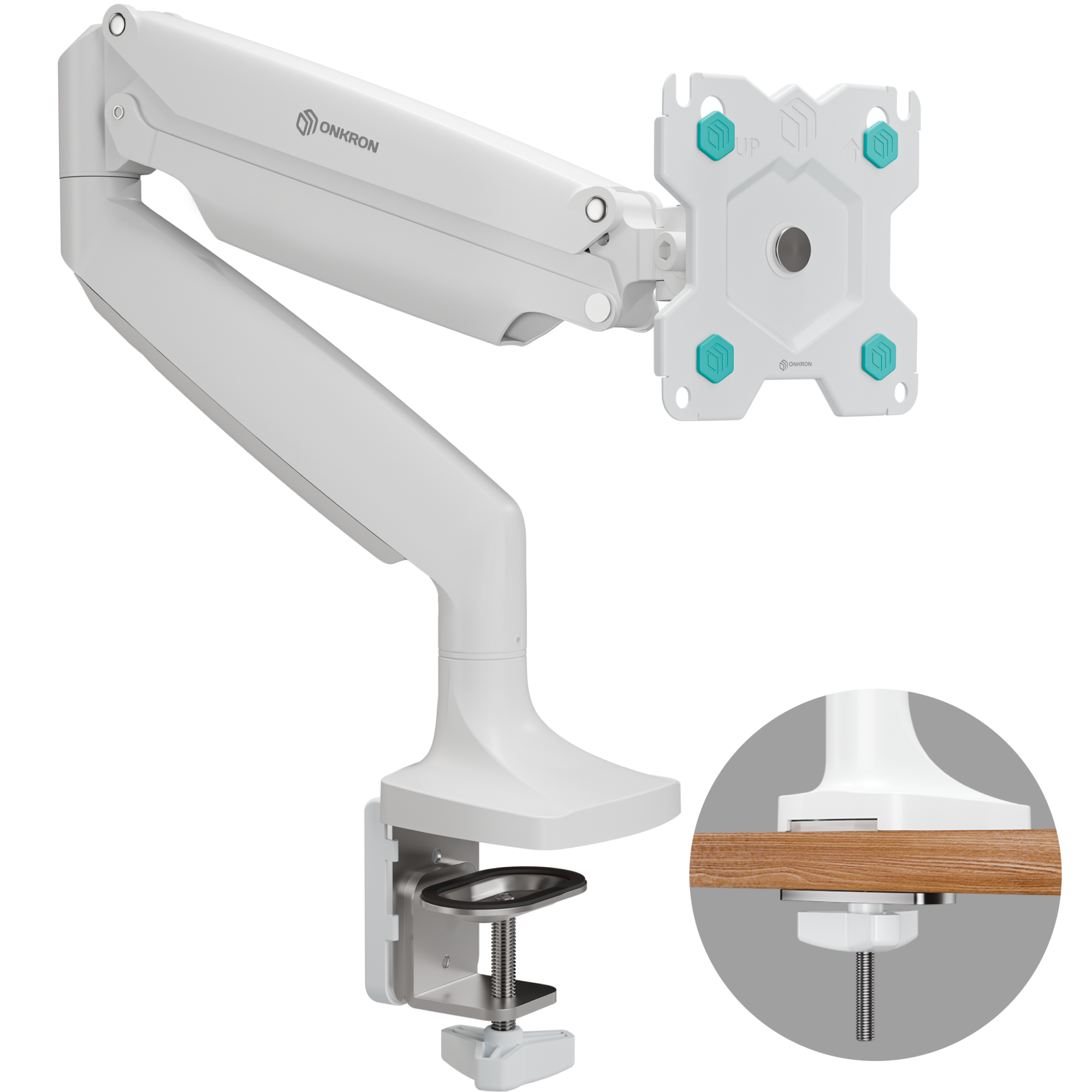 Минусы: Значительный люфт регулировки наклона монитора Странные наклейки на шарнирах На столешницу 36мм закрепить можно только как на фото, что будет мешать подвинуть стол к стене Плюсы: Размер (но может понадобиться 3 метра кабель). Огромный диапазон регулировки высоты В отличие от G80 нет эффекта скручивания кронштейна при вертикальных наклонах экрана. Так же более удачные каналы для кабеля