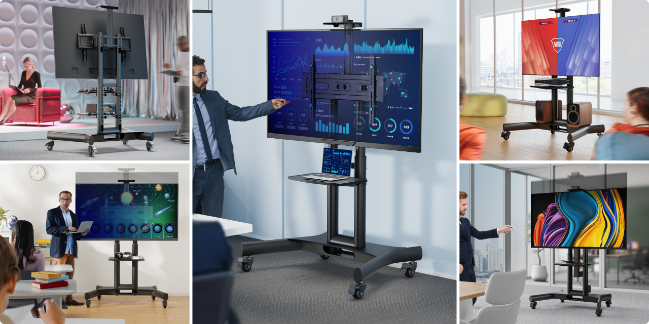 Ищете гибкое решение для размещения телевизора в офисе, классе или зоне презентаций? Мобильная стойка для экранов 40"–70", рассчитанная на вес ТВ до 45.5 кг.