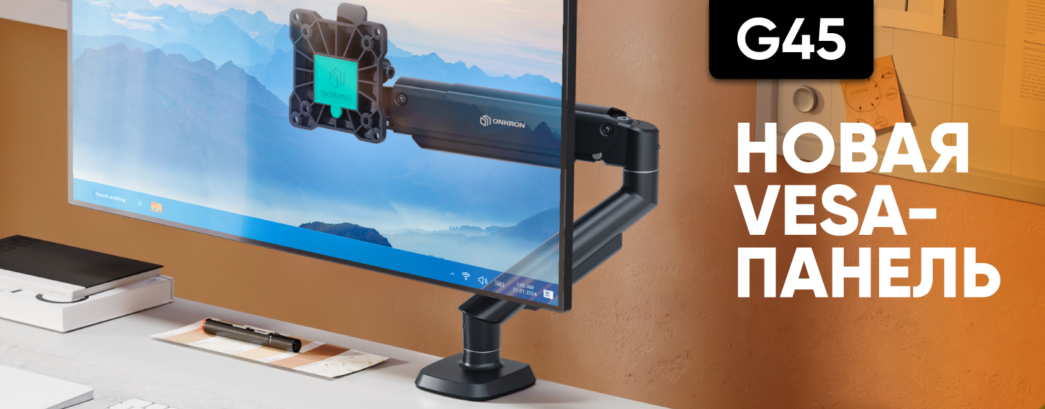 Встречайте обновлённый настольный кронштейн G45! Модель подходит для экранов до 32” и весом до 9 кг. Одно из главных нововведений — быстросъёмная VESA-панель! Отличный вариант для домашних рабочих мест.